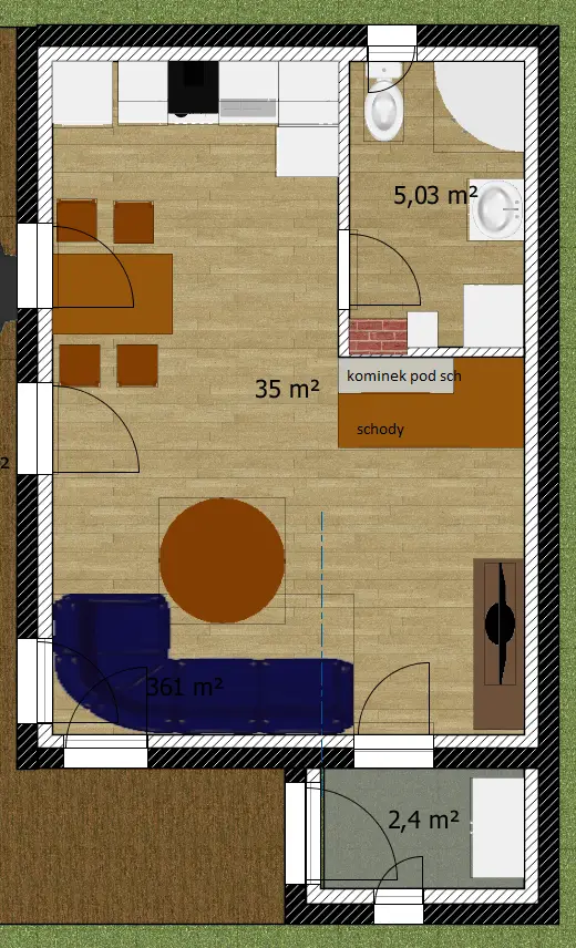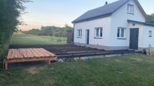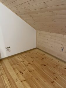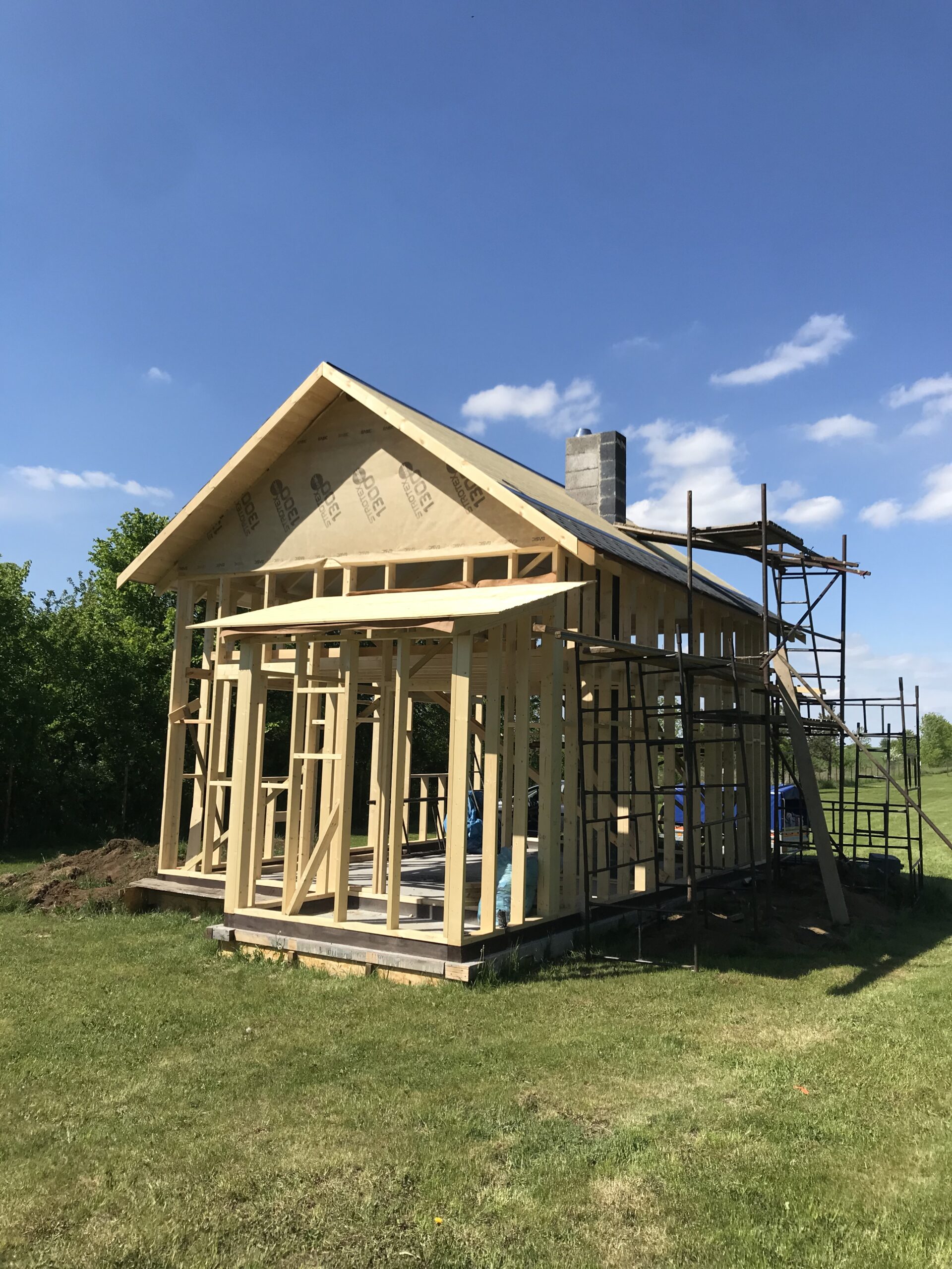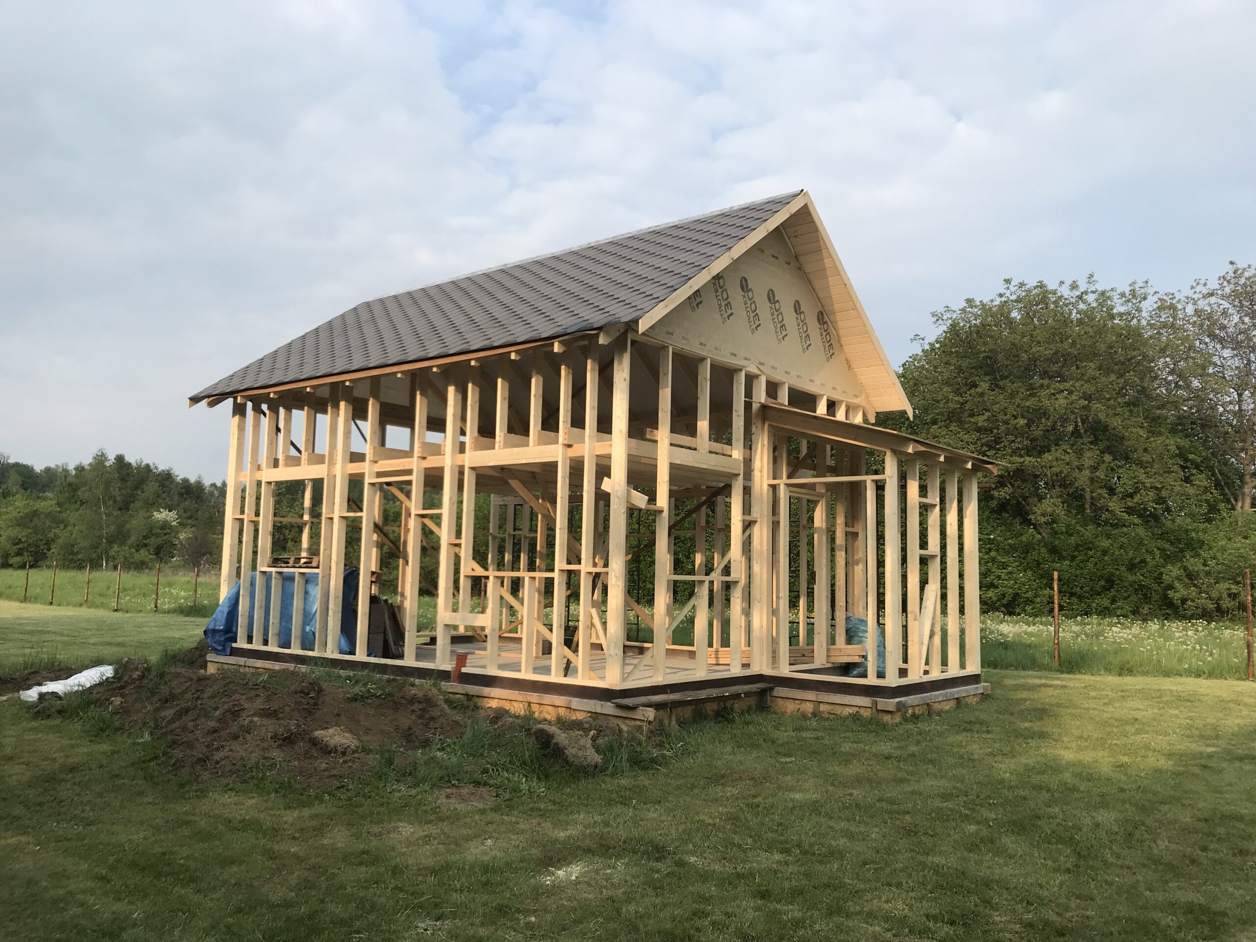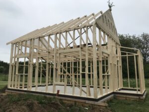 Konstrukcja domu wykonana z drewna świerkowego klasyfikowanego C24 o przekroju 45x145mm /dach 45x195mm