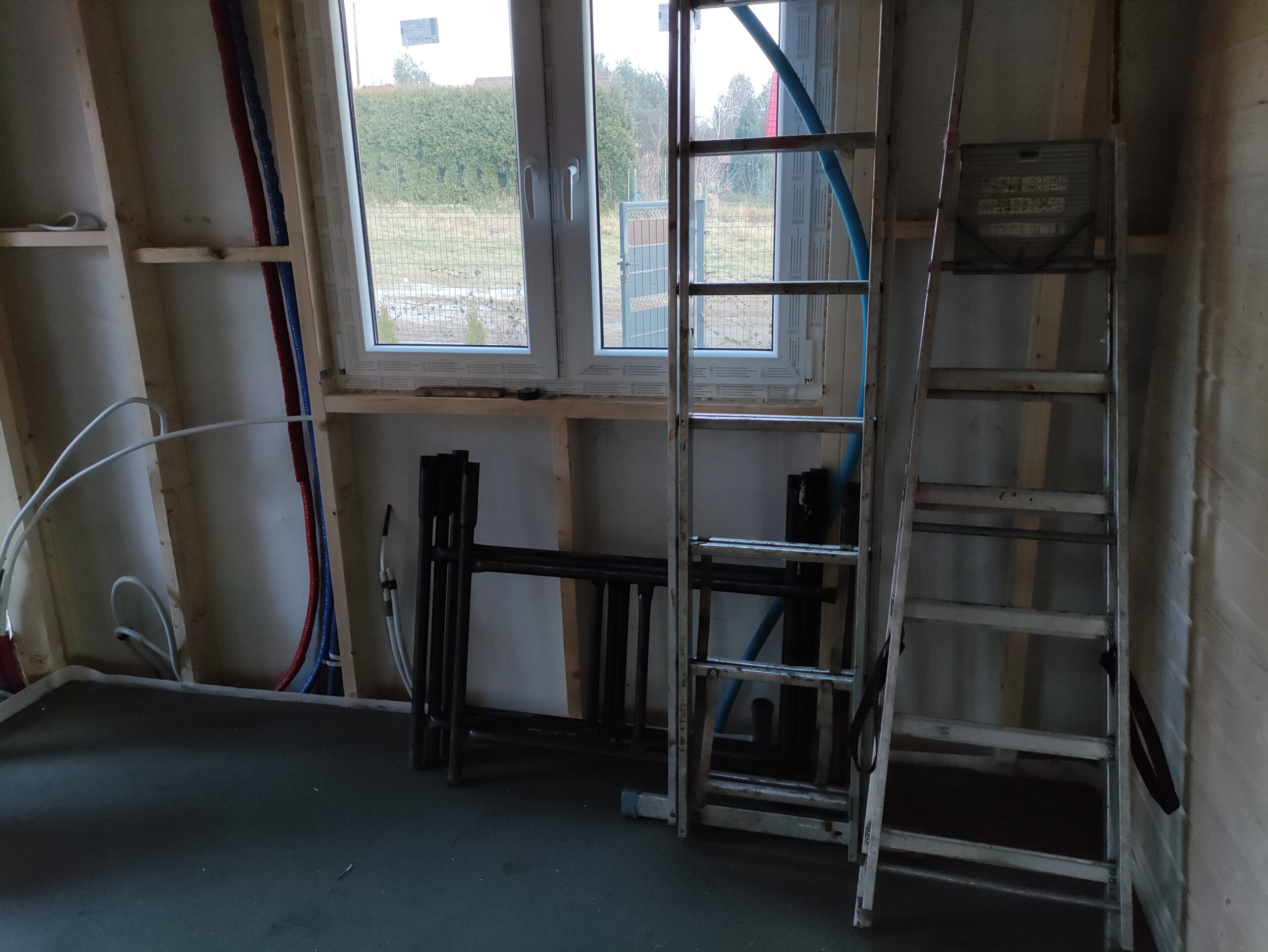 – Okna PCV: 3 szt. jedno-kwaterowe o wymiarach ok. 120x100cm , 1 szt. 50×50cm do WC i 2 szt. na poddaszu o wymiarach ok. 70x80cm