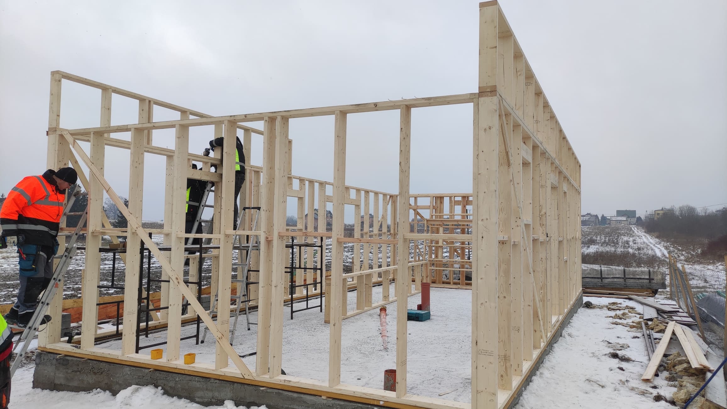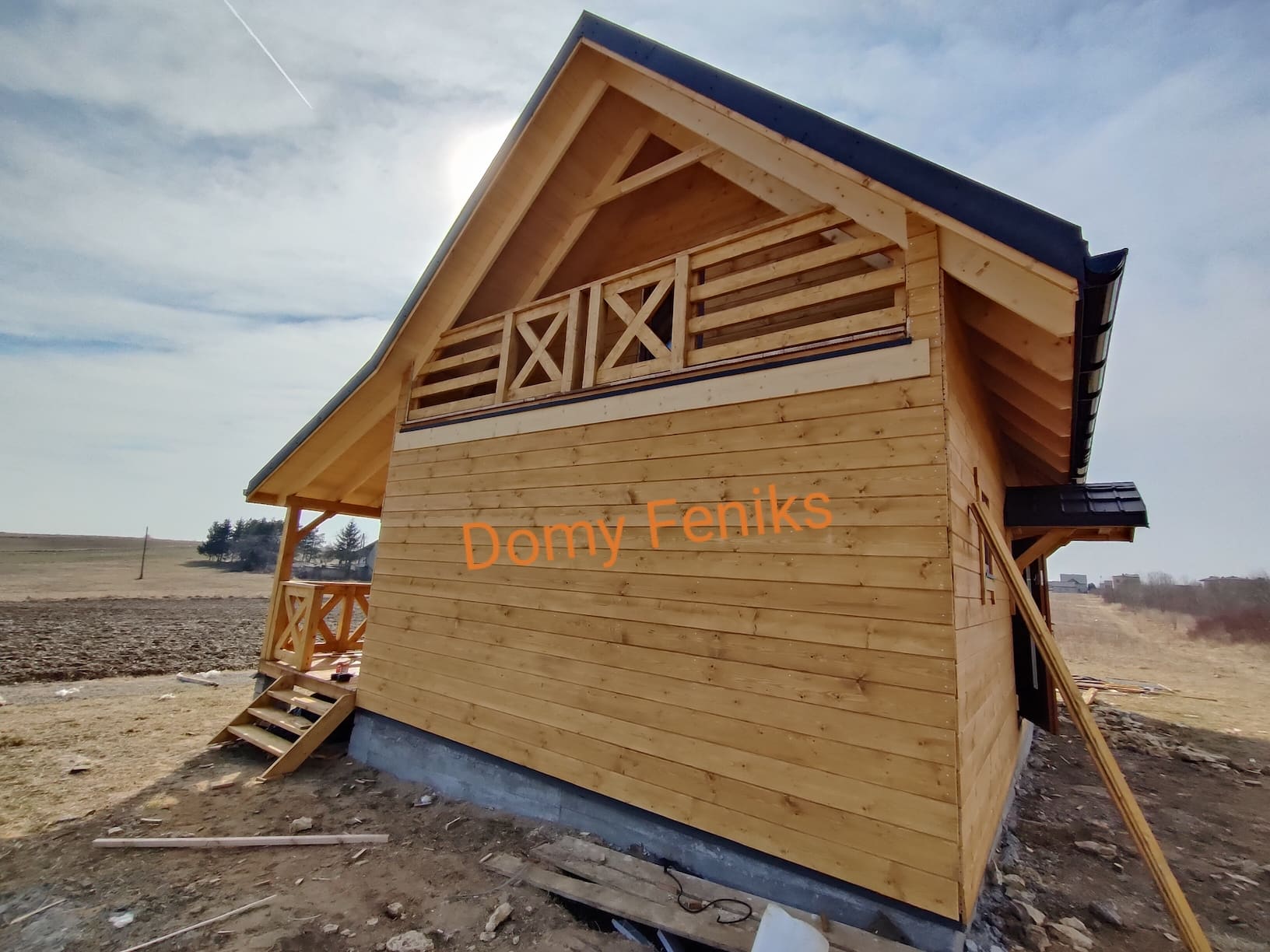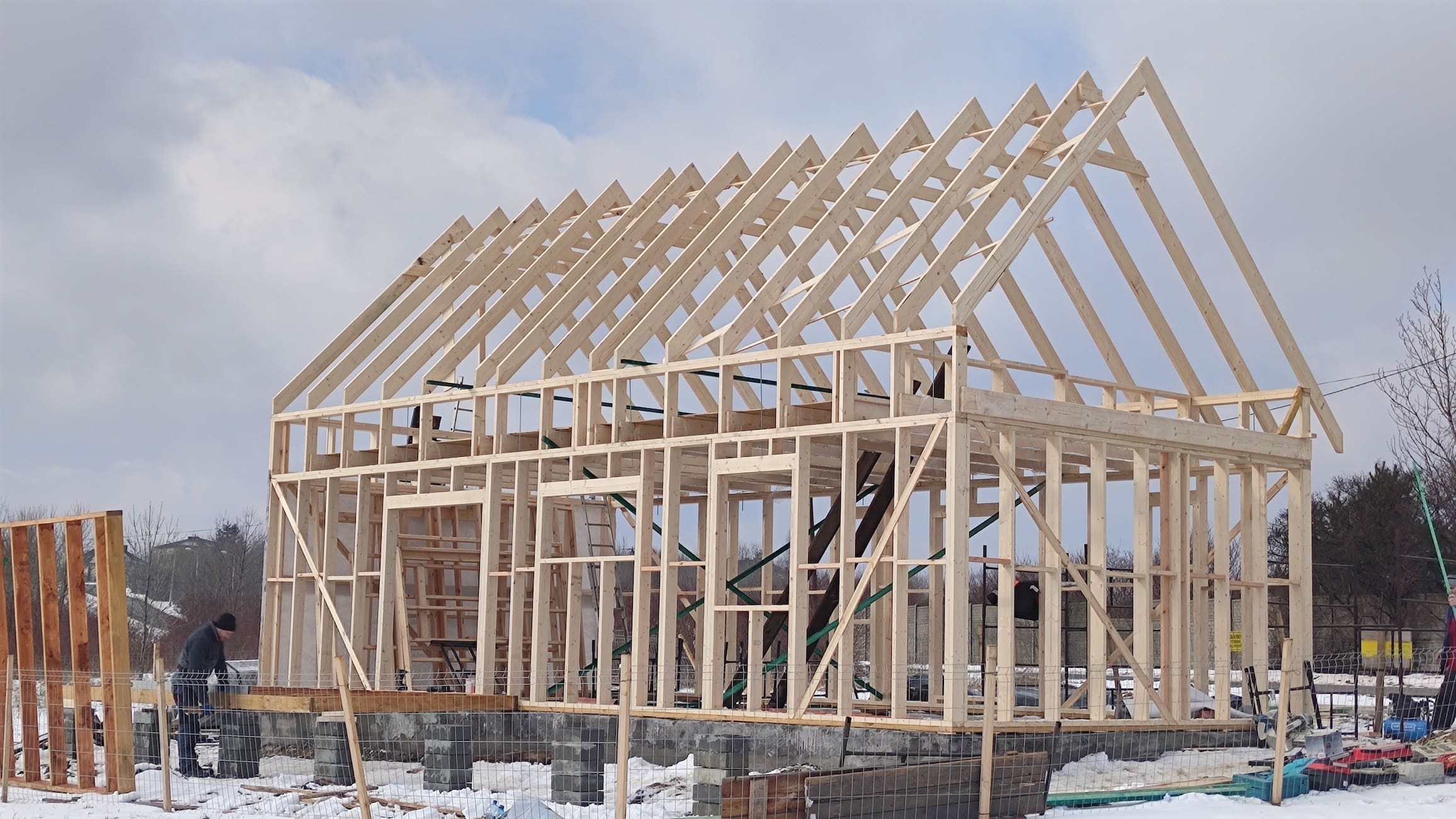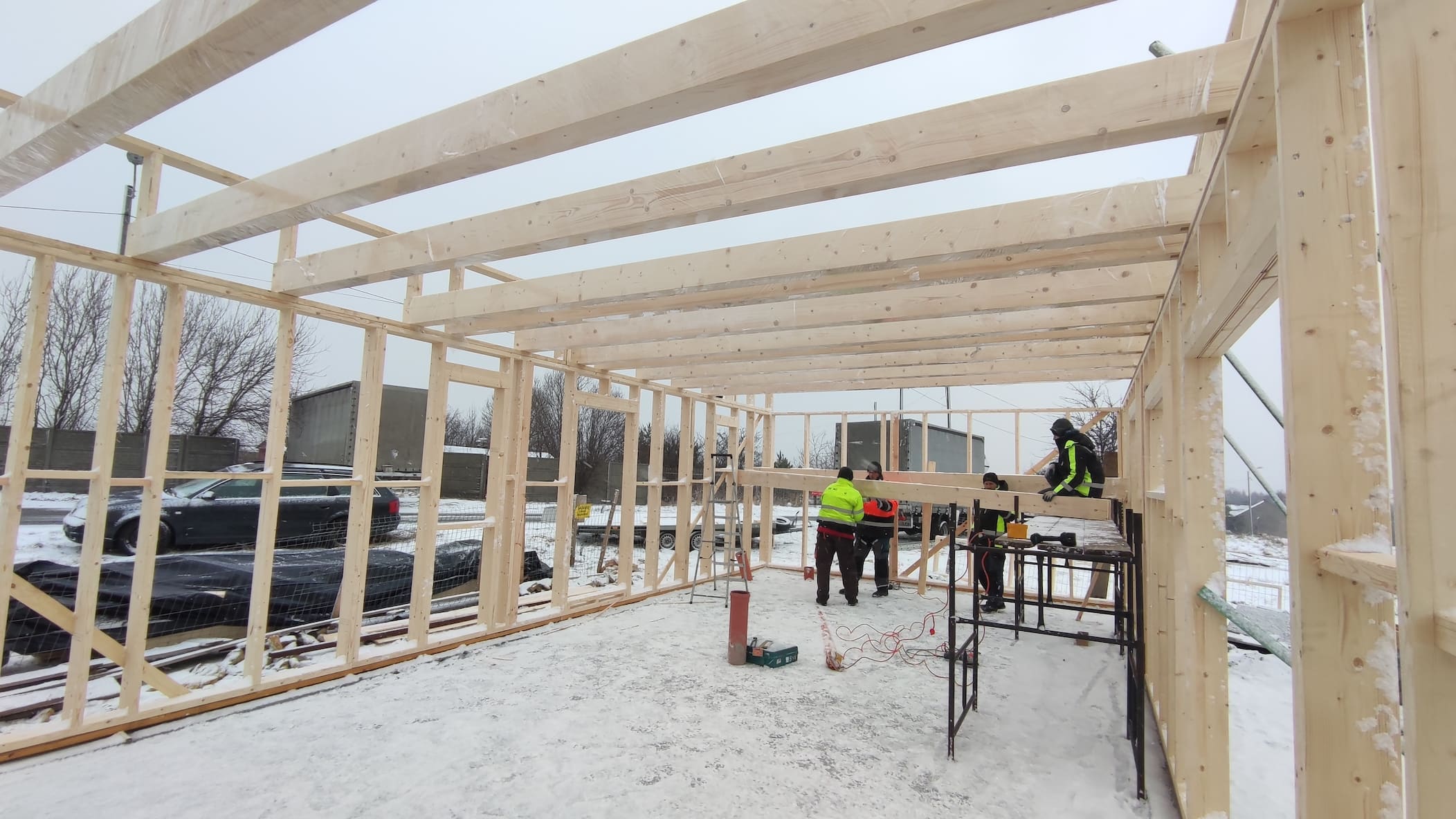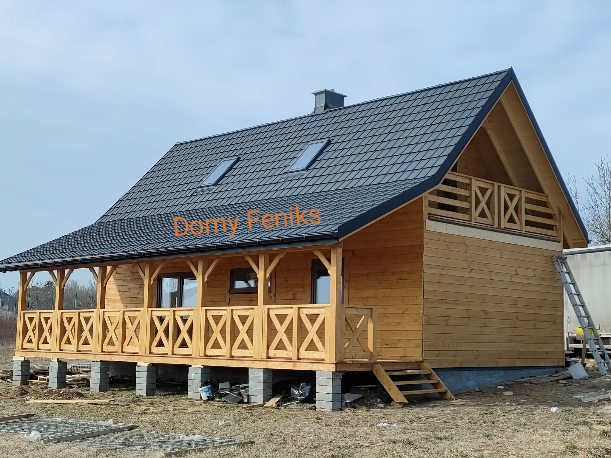 Konstrukcja domu wykonana z drewna świerkowego klasyfikowanego C24 o przekroju 45x145mm /dach 45x195mm