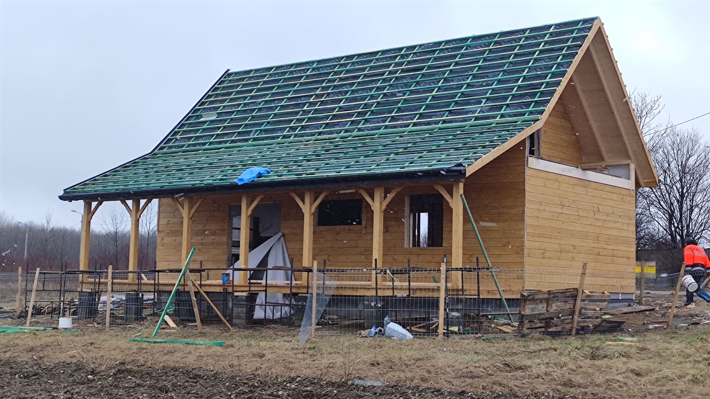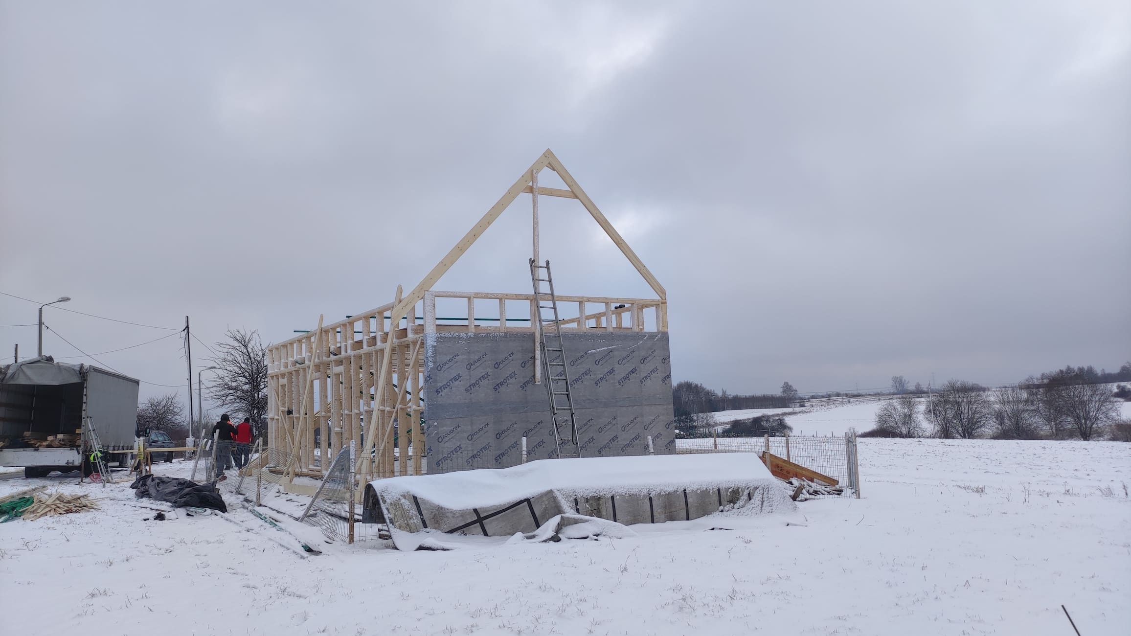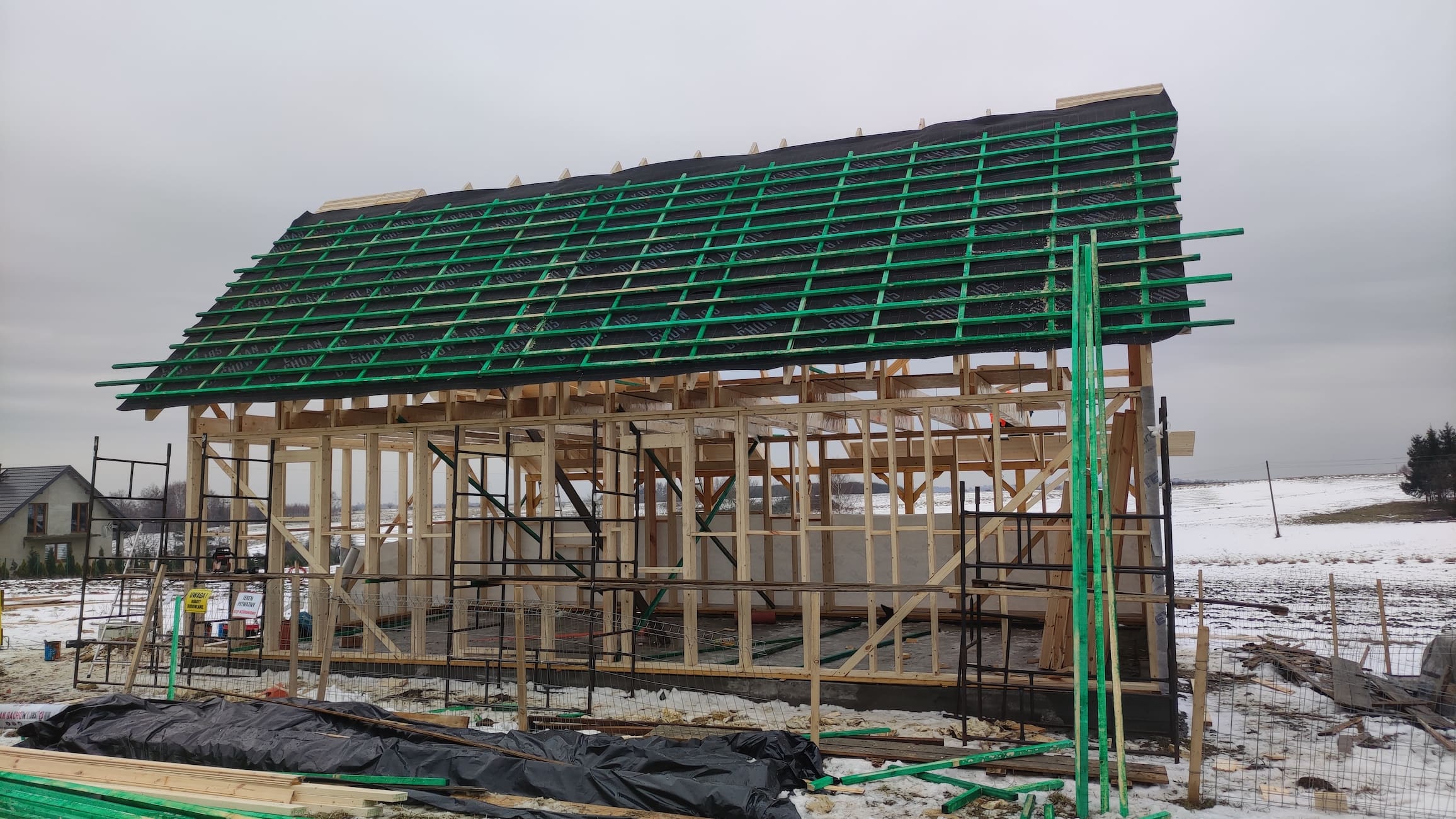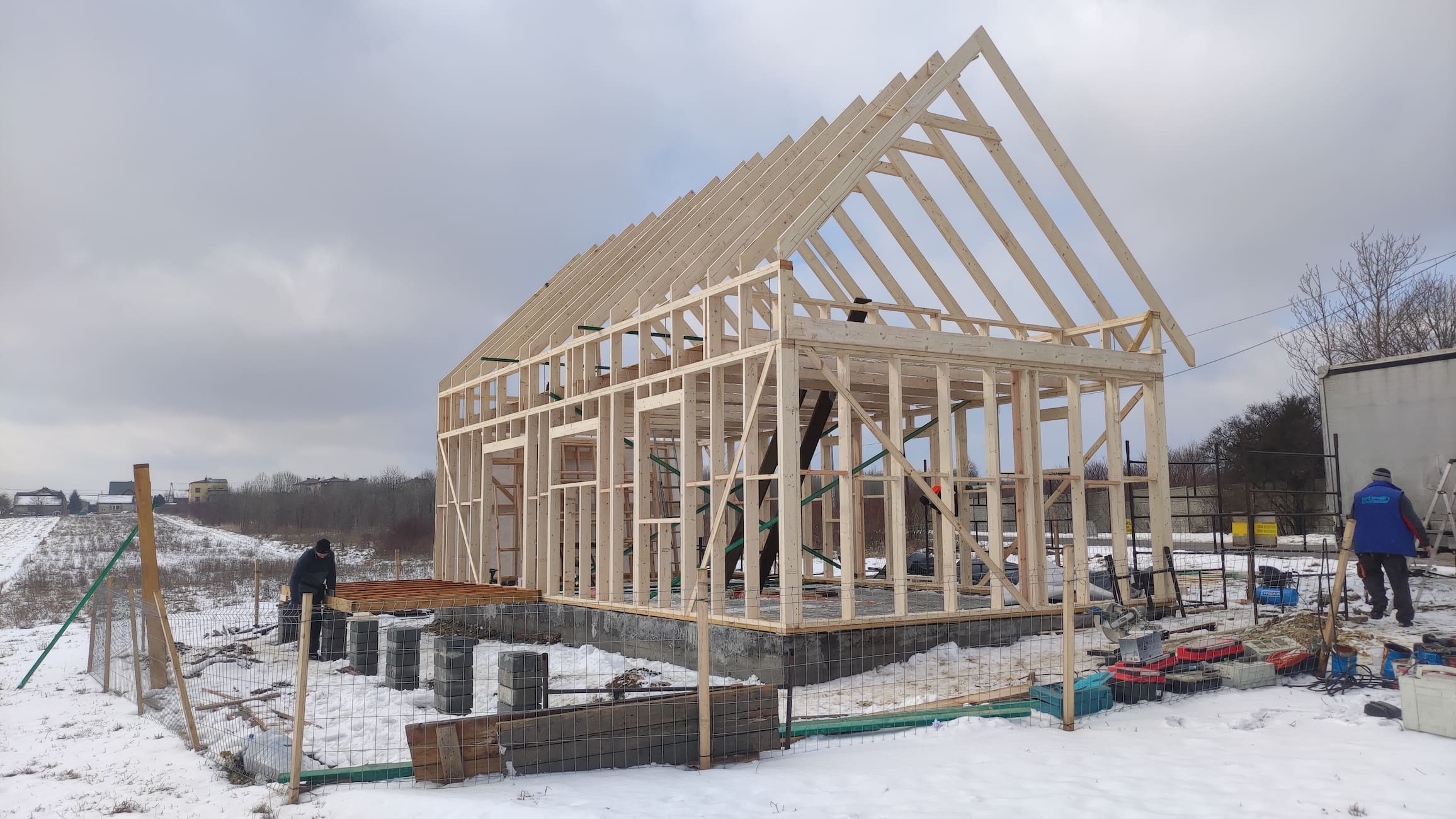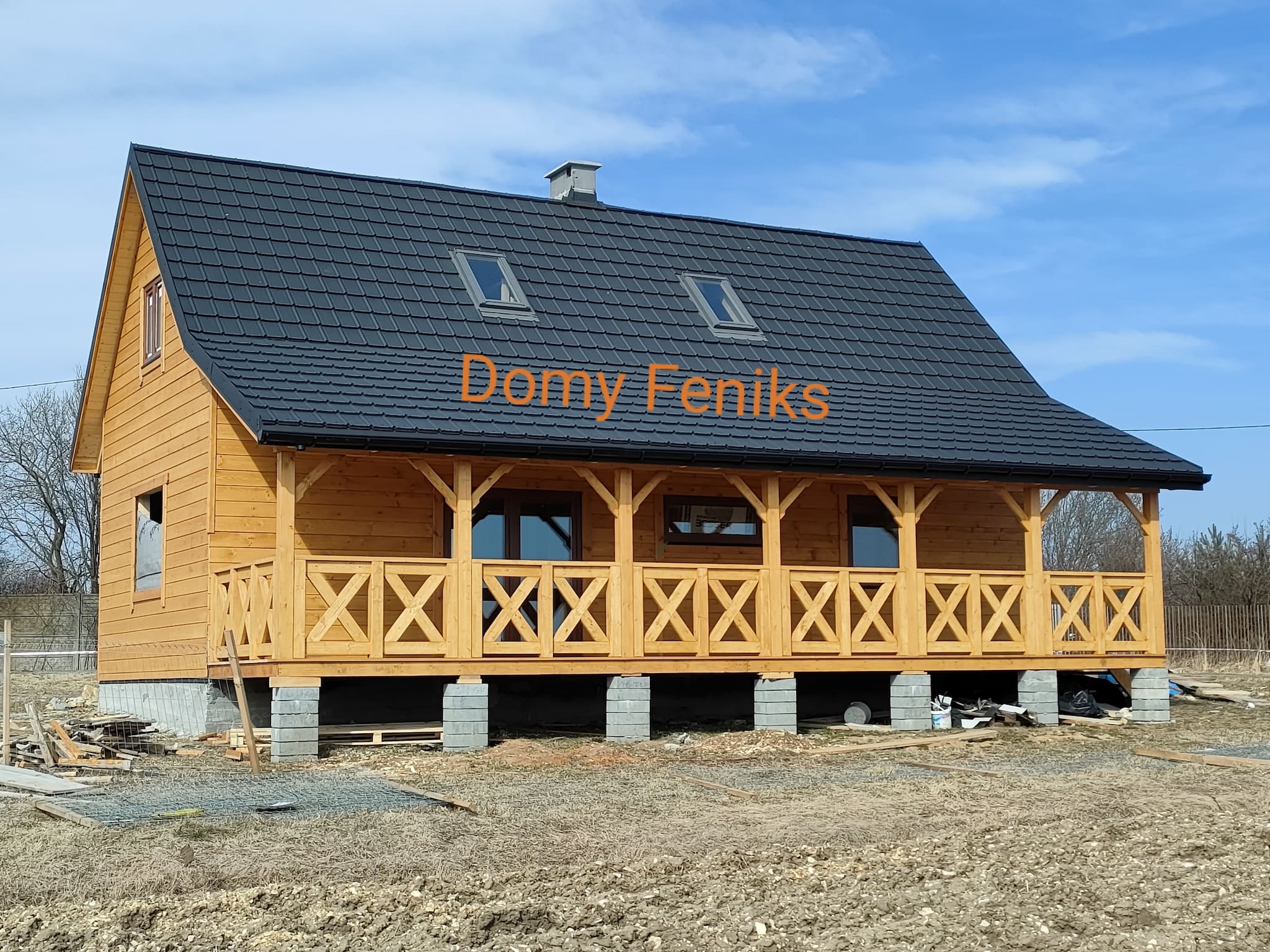 Konstrukcja domu wykonana z drewna świerkowego klasyfikowanego C24 o przekroju 45x145mm /dach 45x195mm