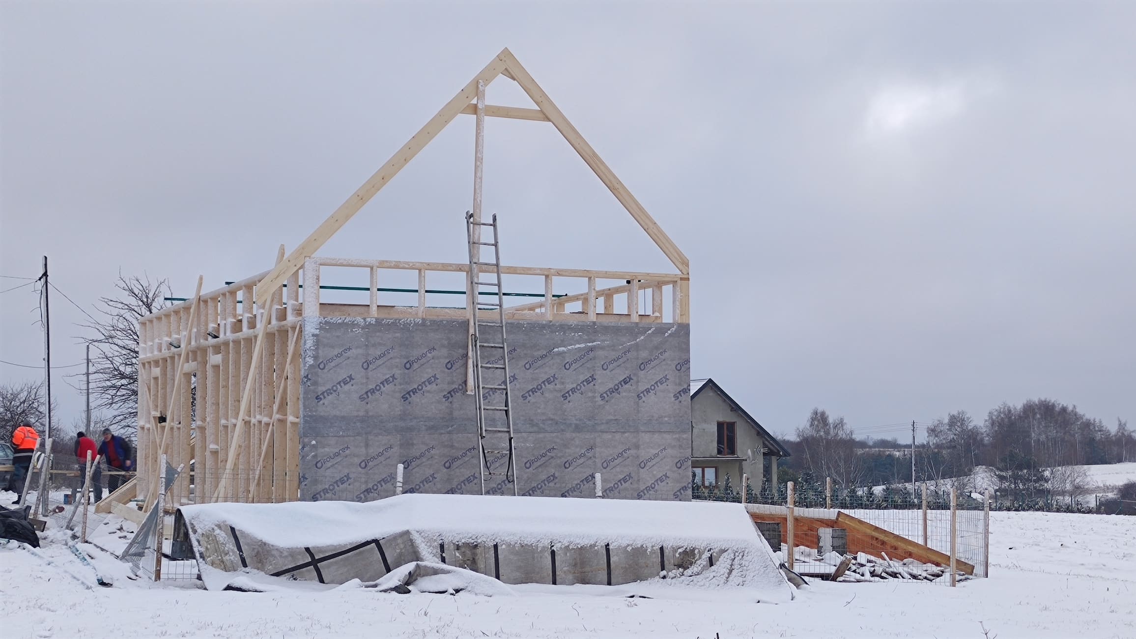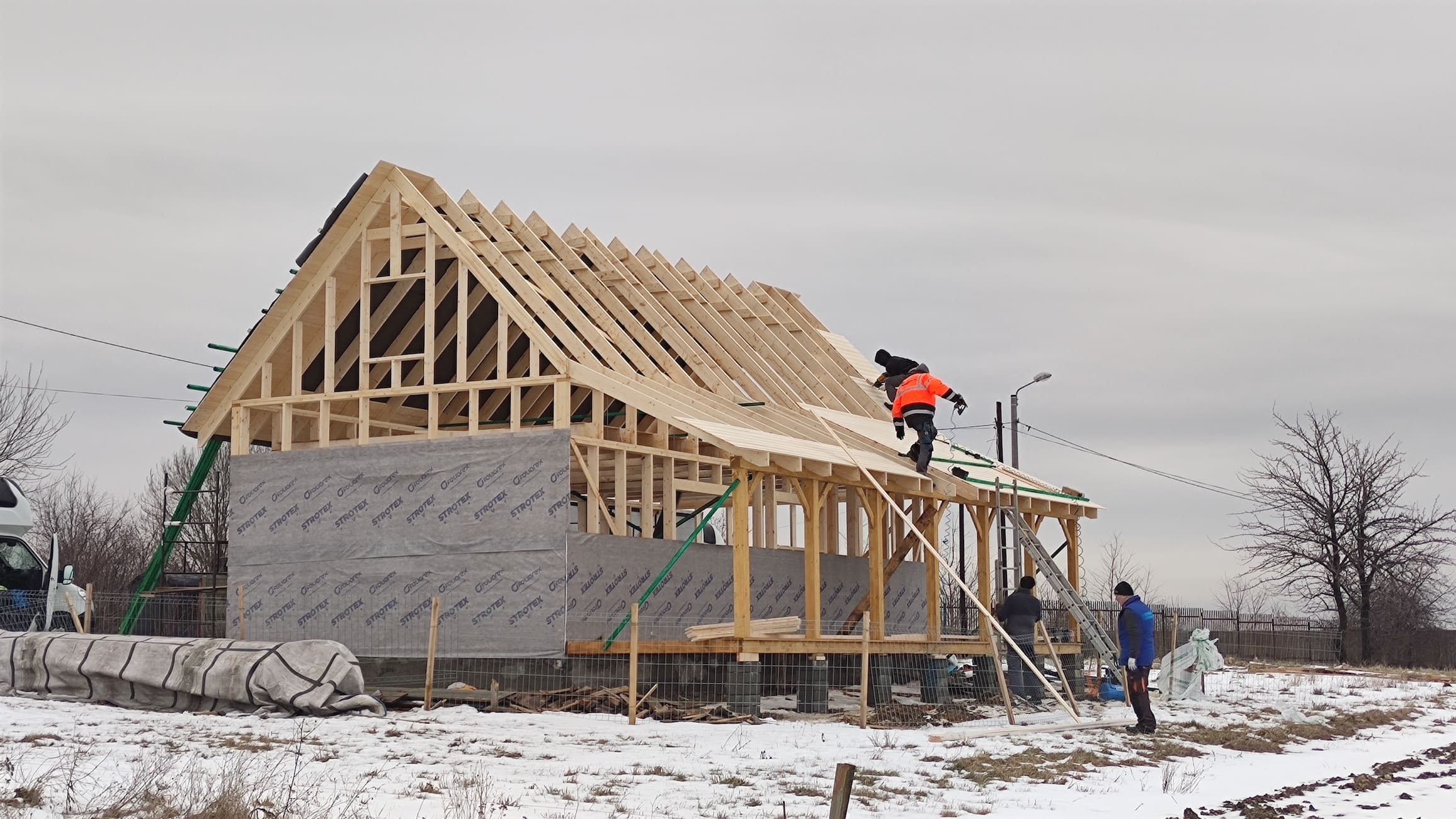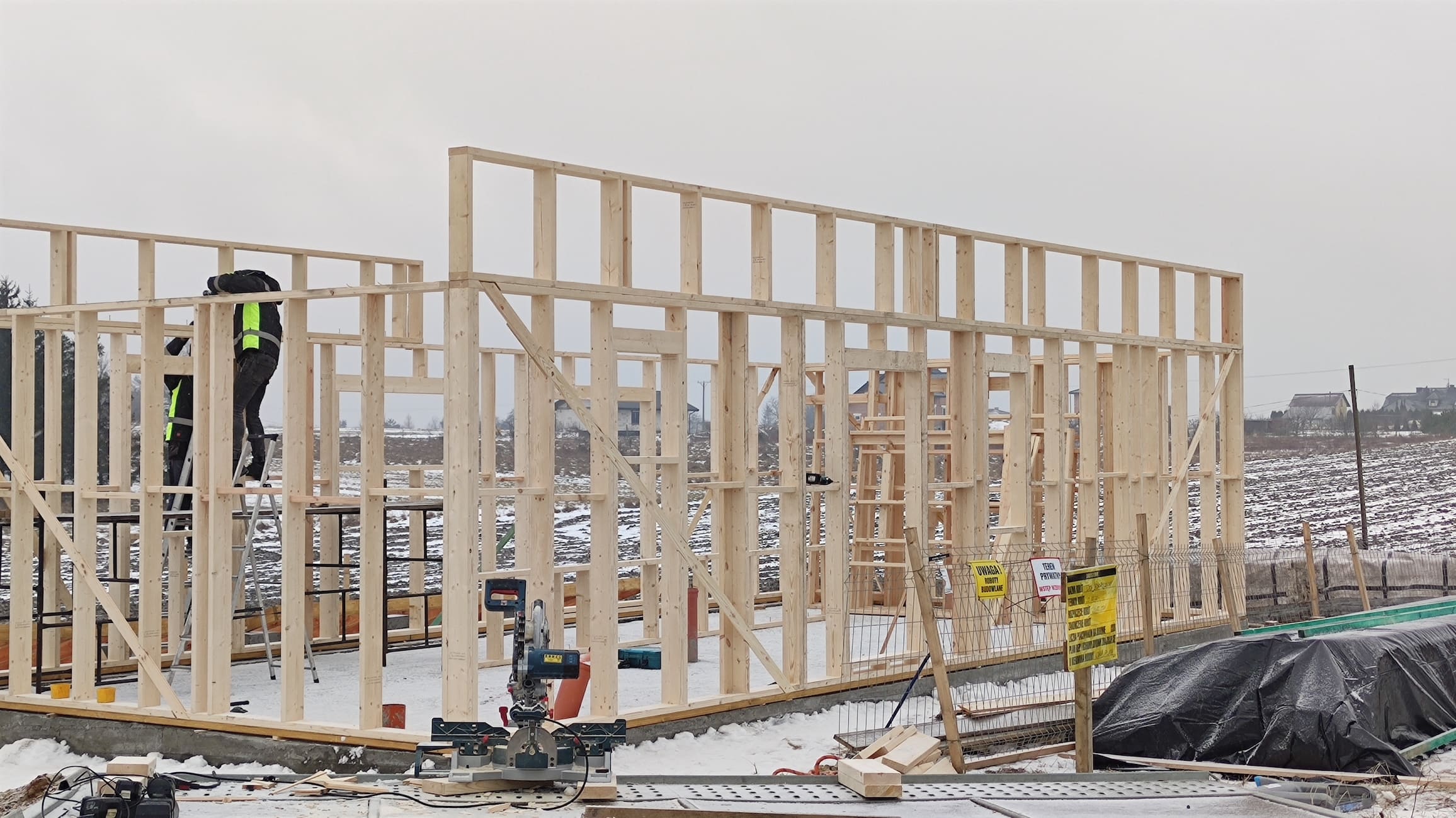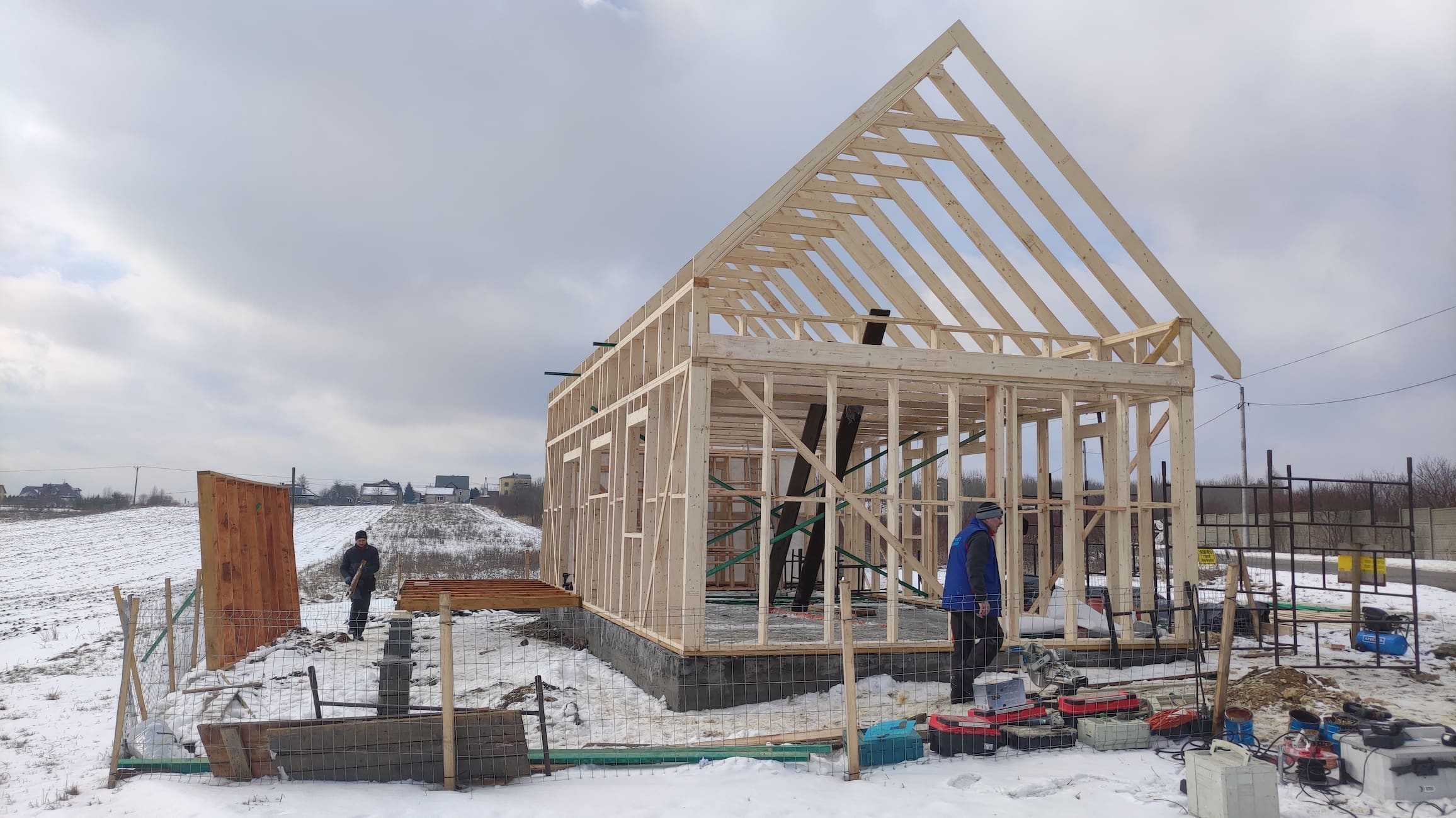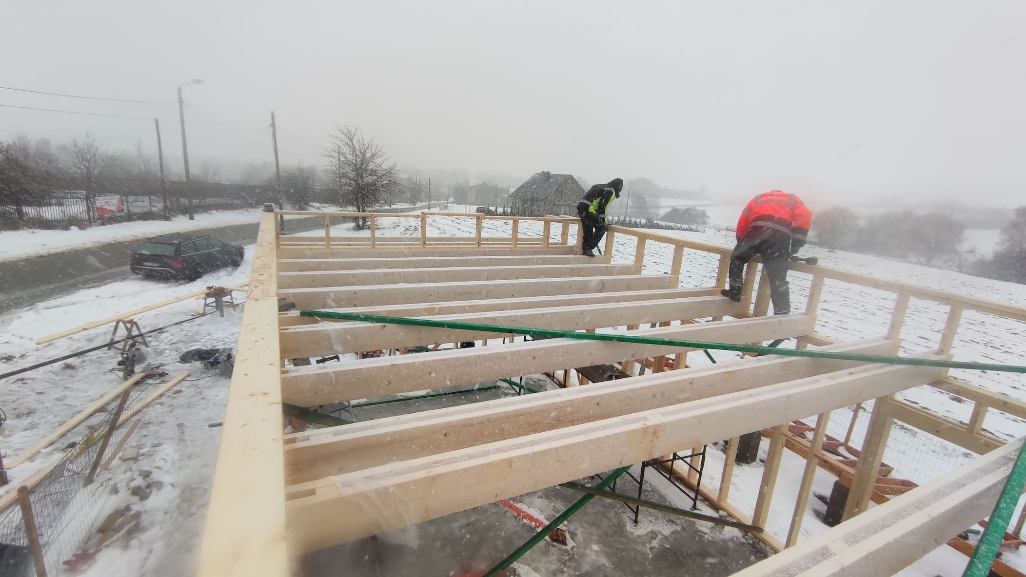Konstrukcja domu wykonana z drewna świerkowego klasyfikowanego C24 o przekroju 45x145mm /dach 45x195mm