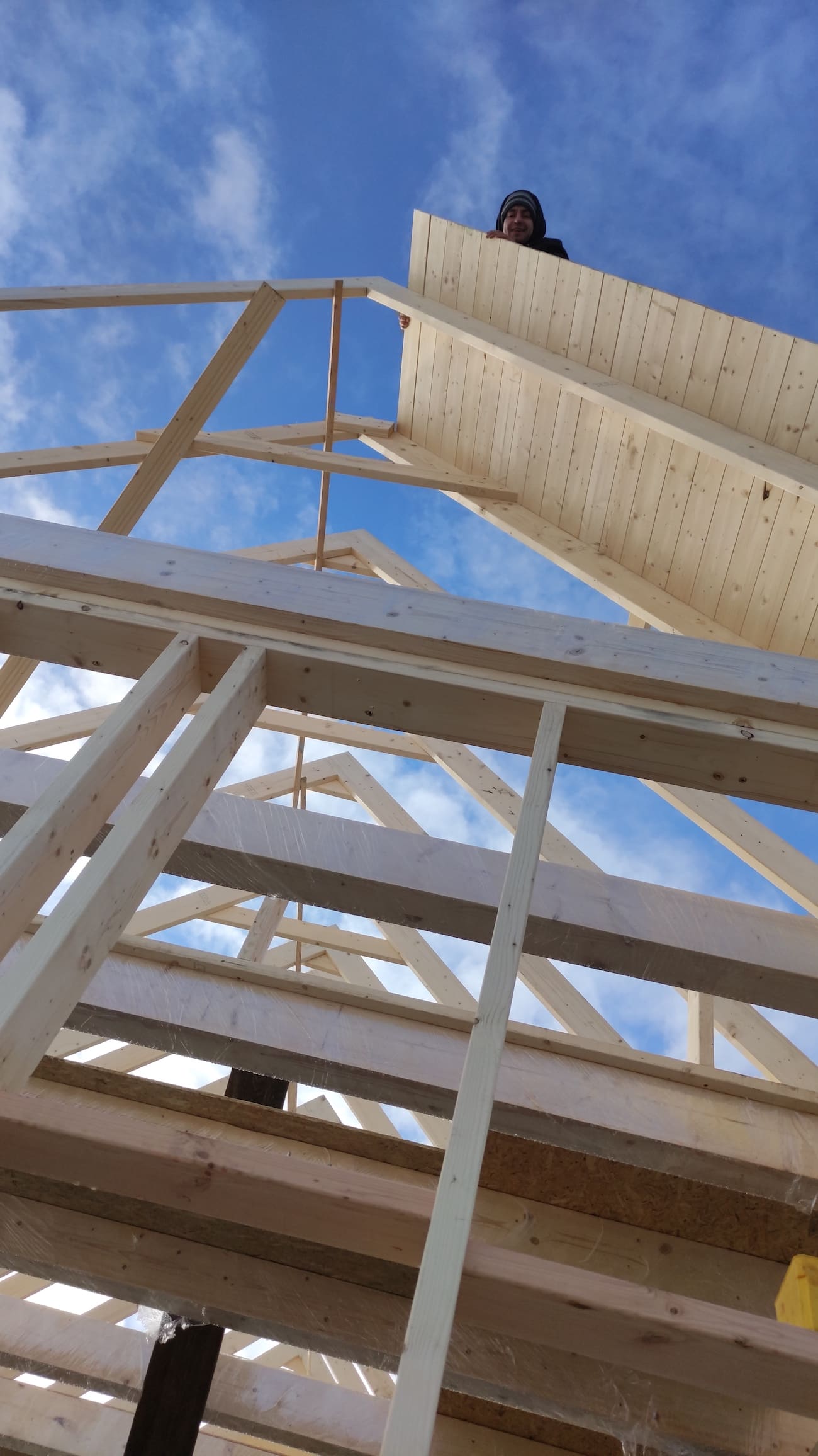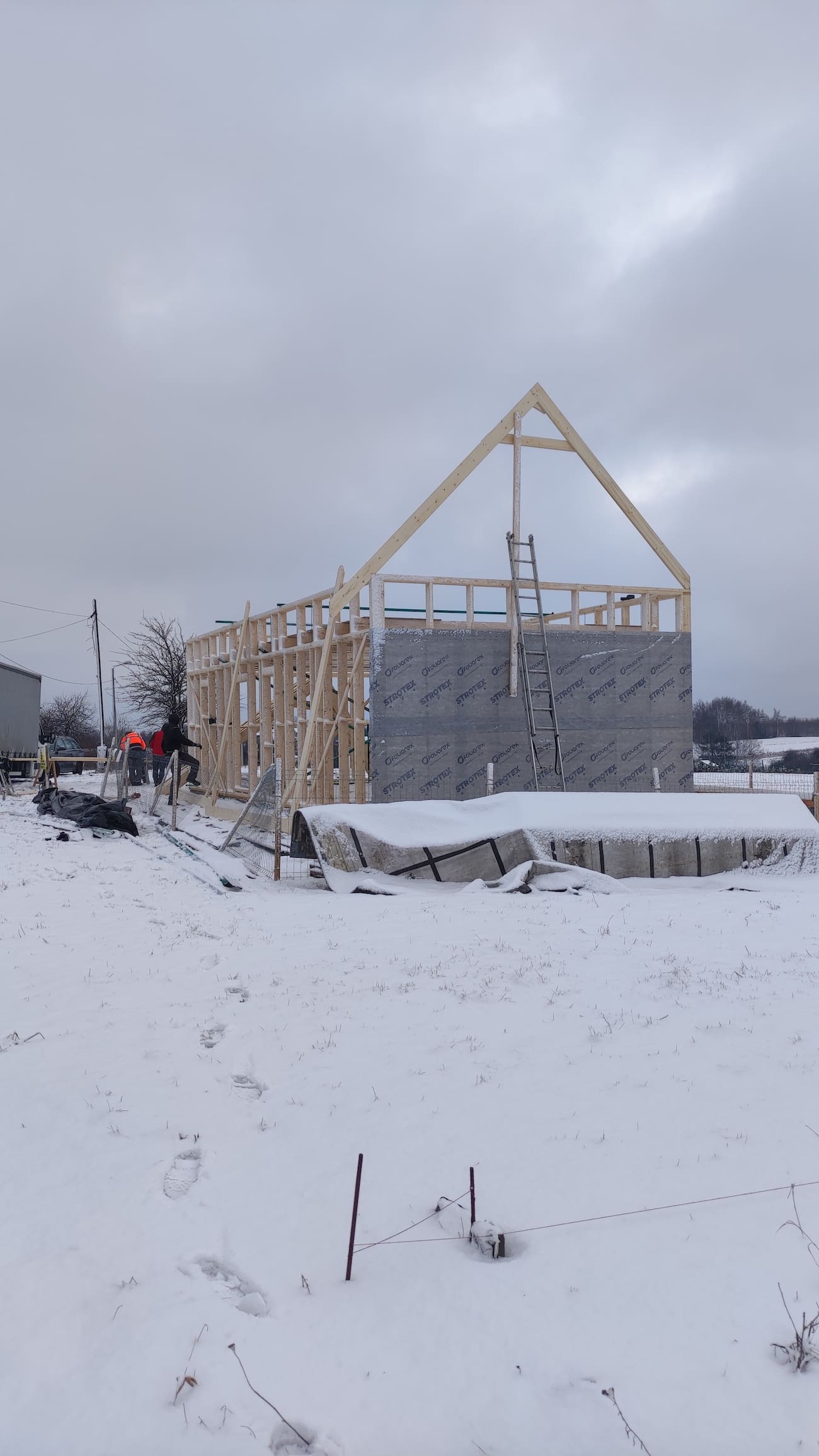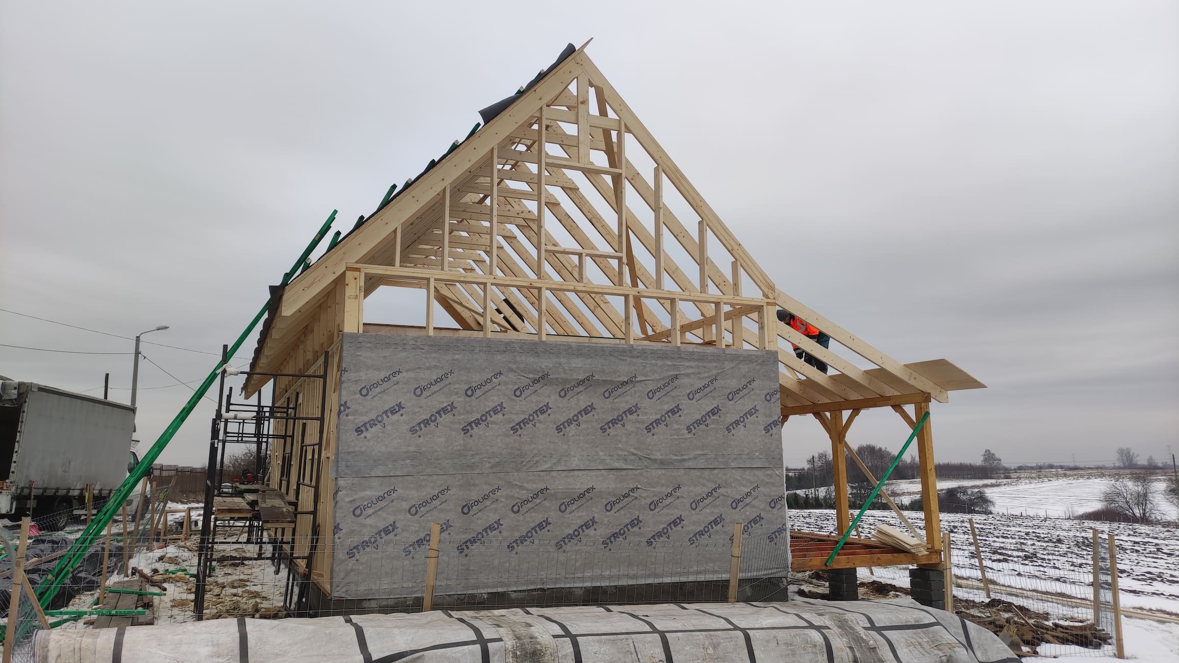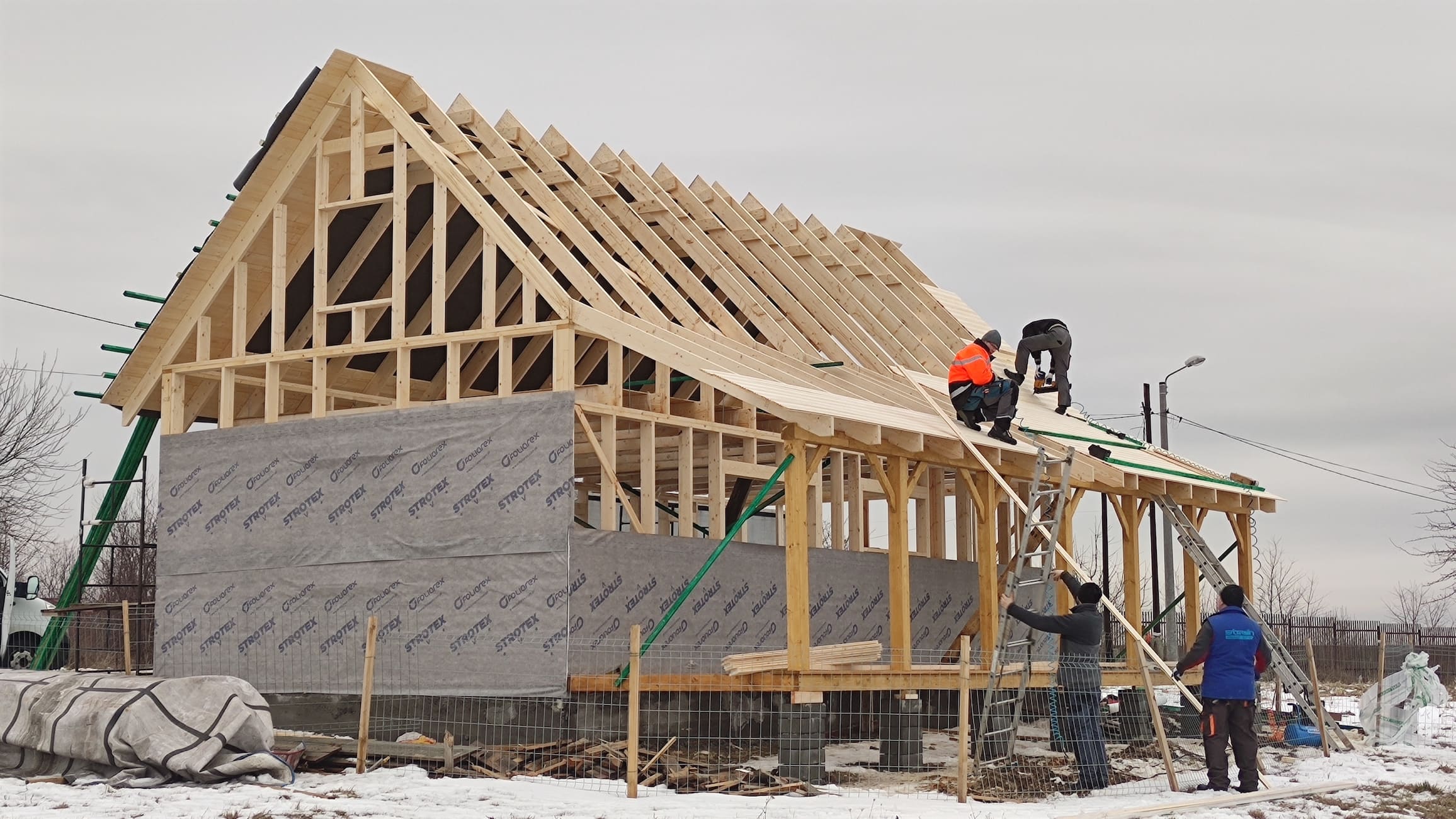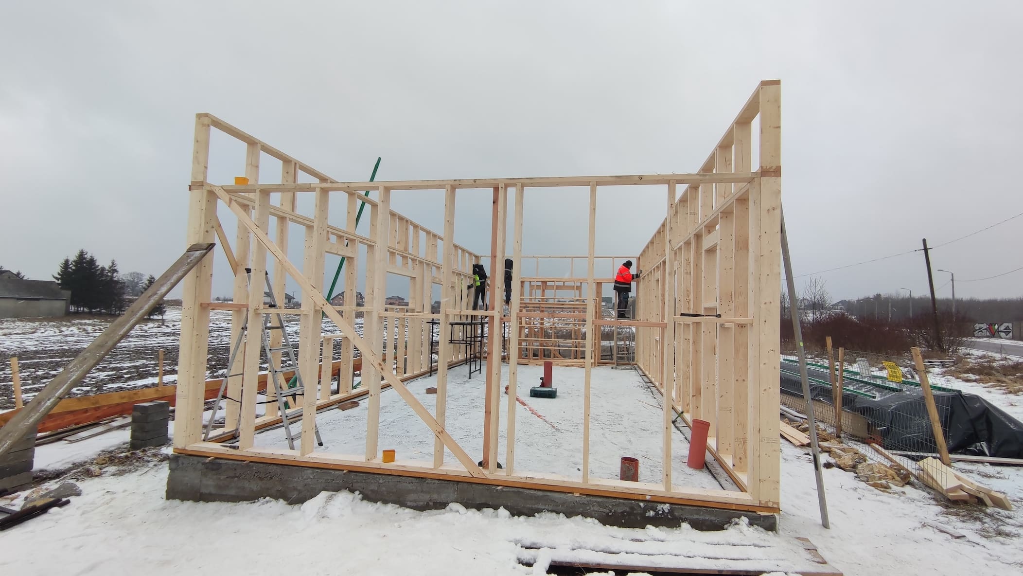 Konstrukcja domu wykonana z drewna świerkowego klasyfikowanego C24 o przekroju 45x145mm /dach 45x195mm