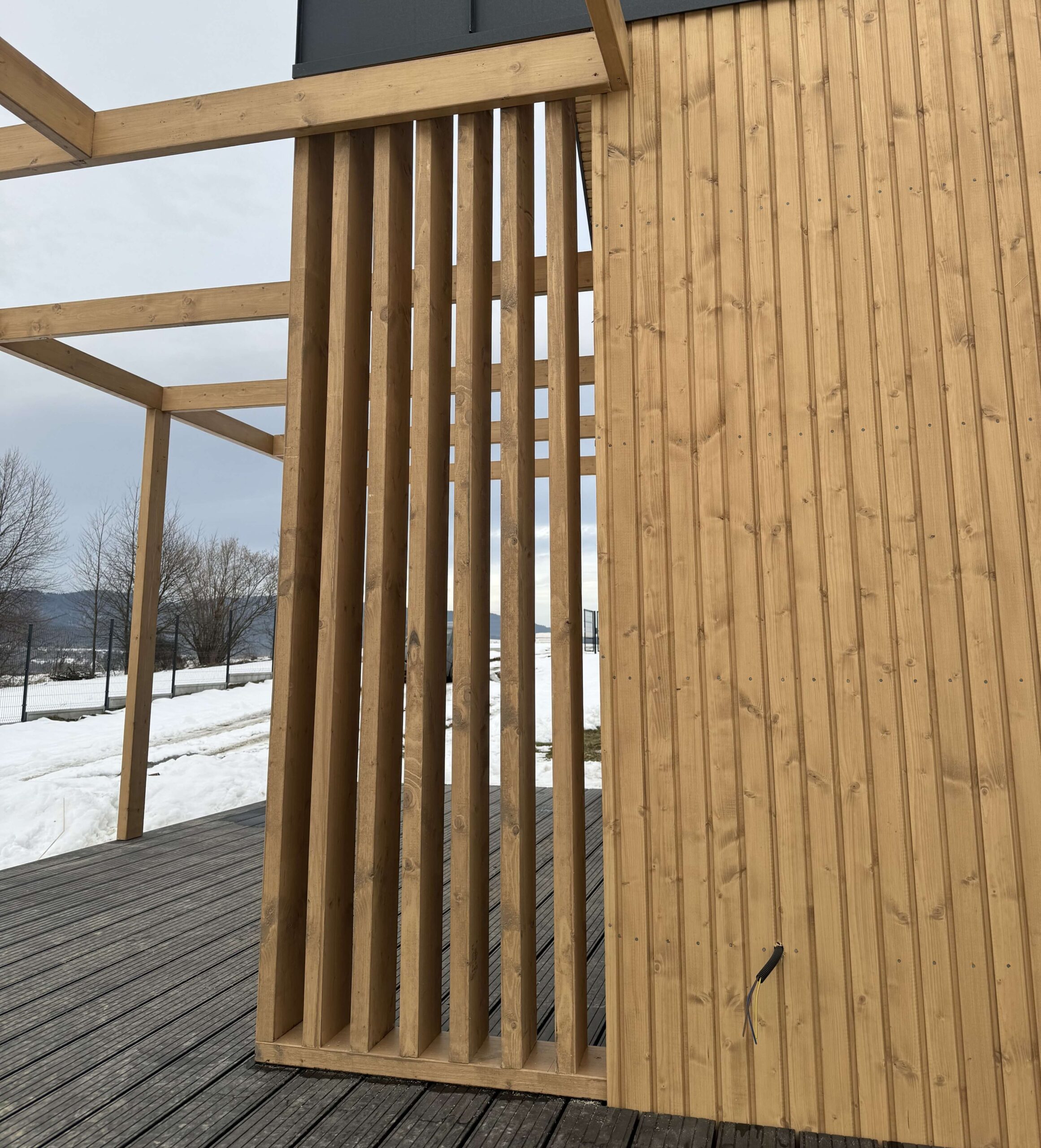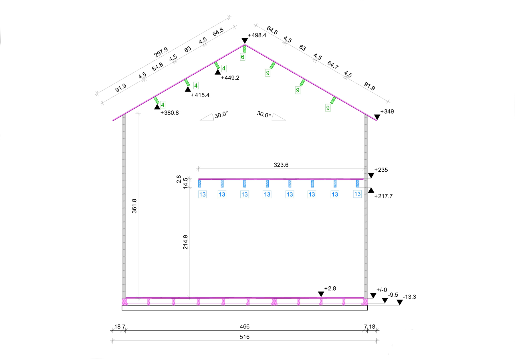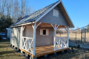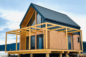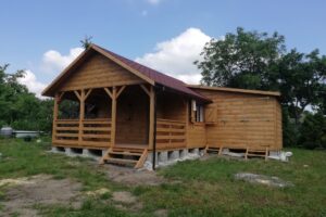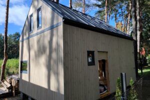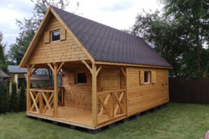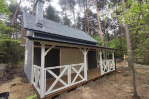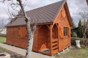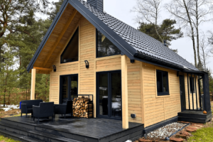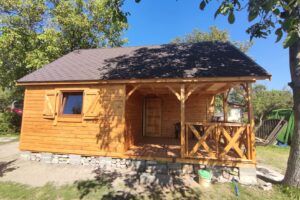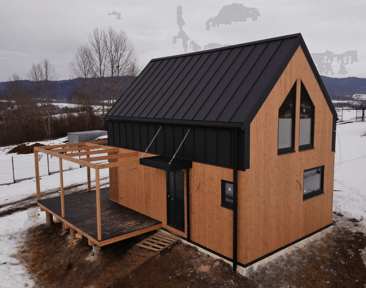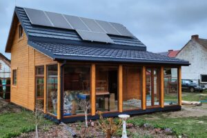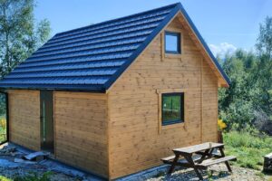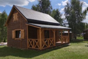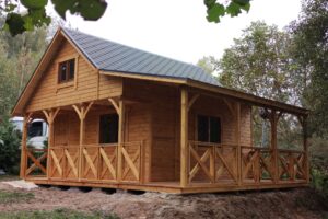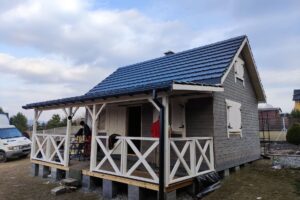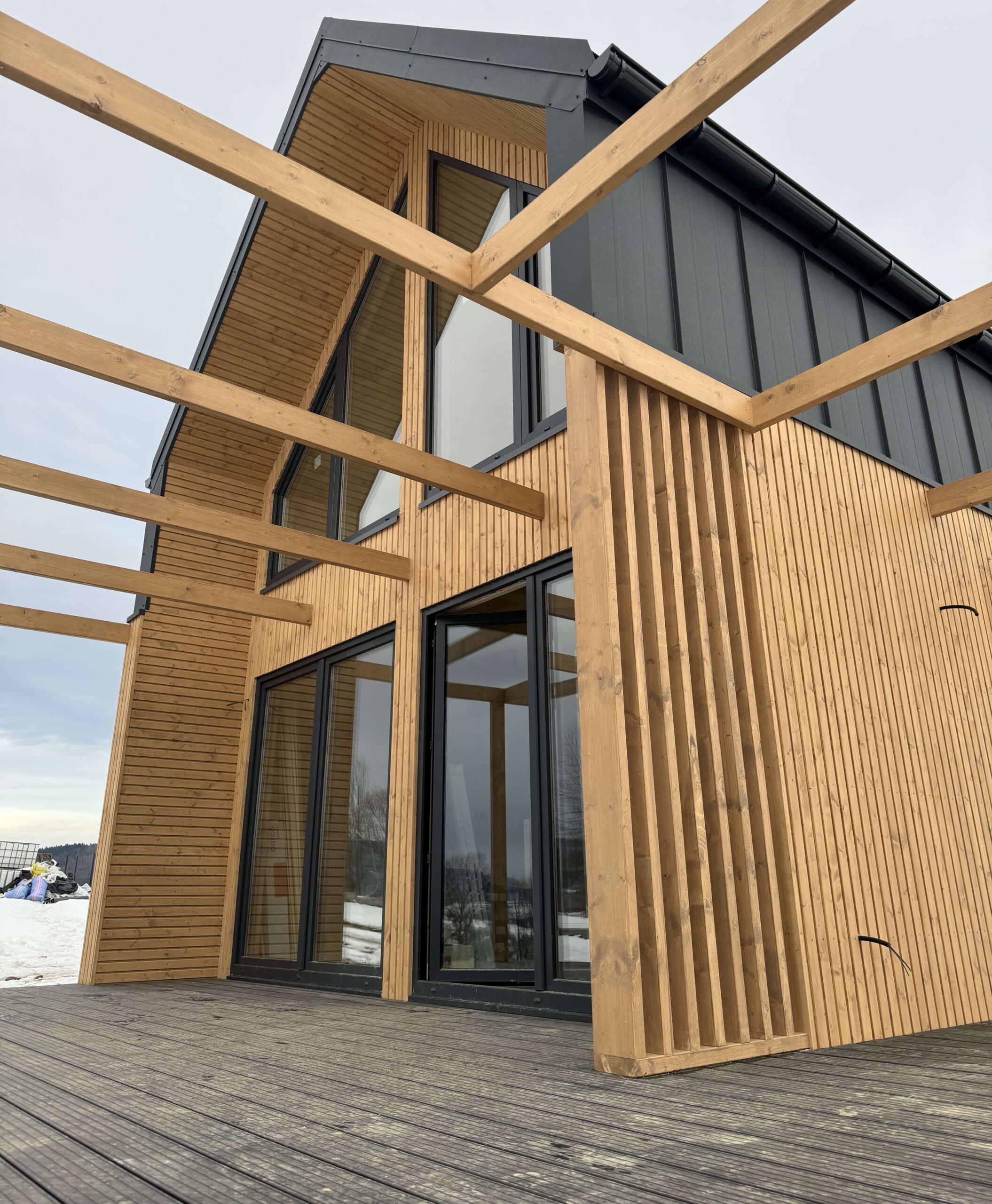 Konstrukcja domu wykonana z drewna świerkowego klasyfikowanego C24 o przekroju 45x145mm /dach 45x195mm