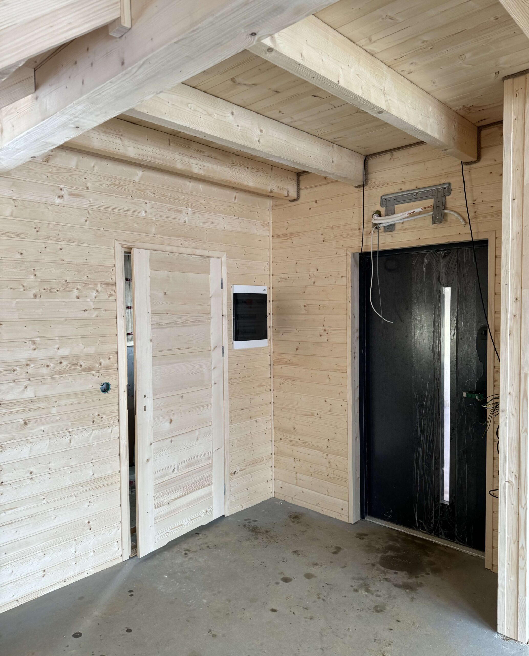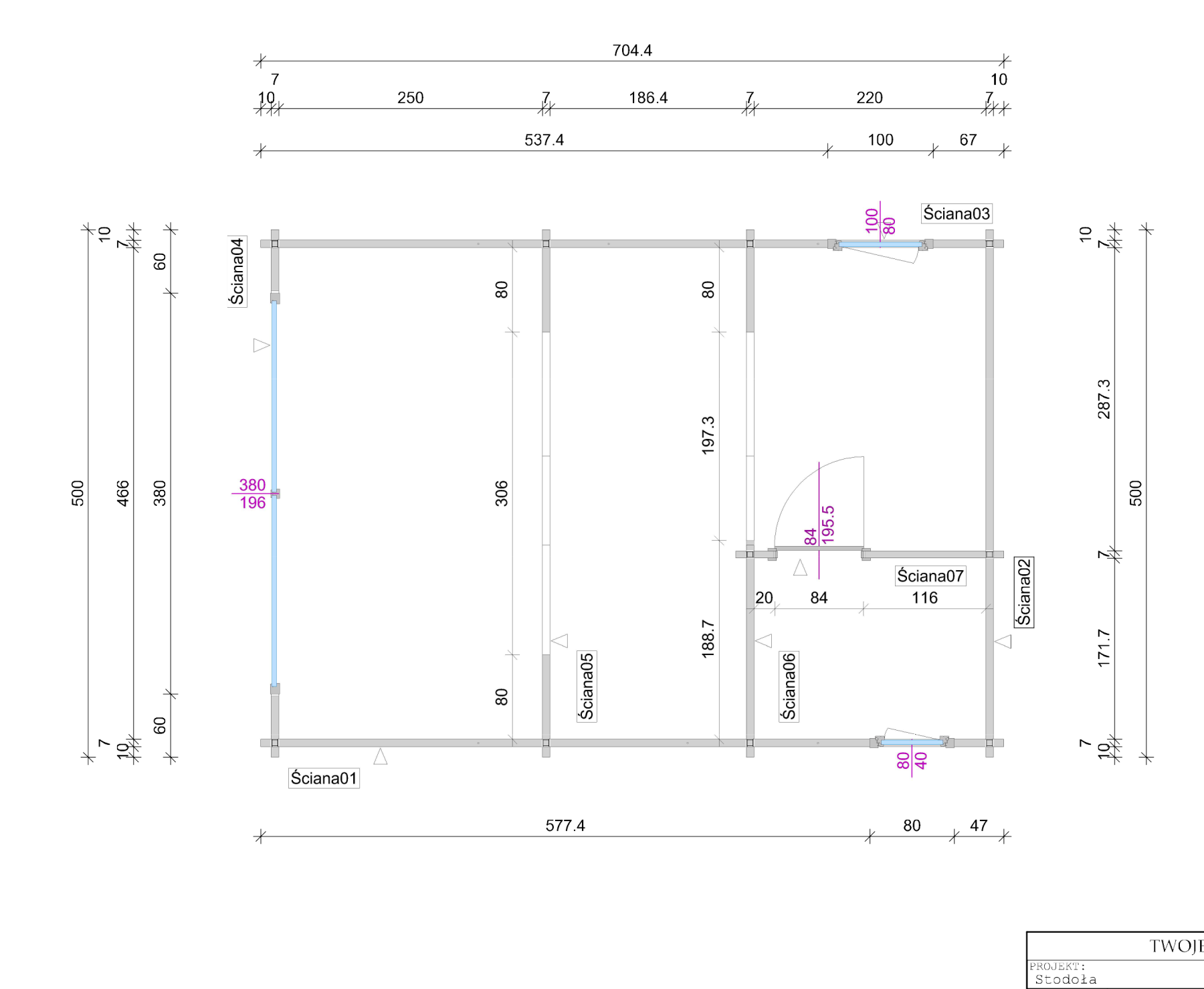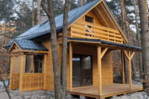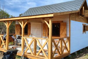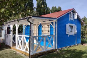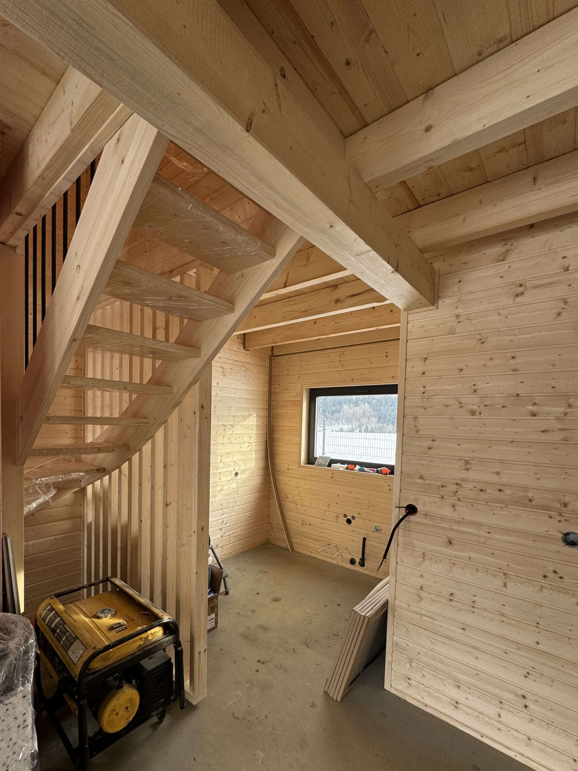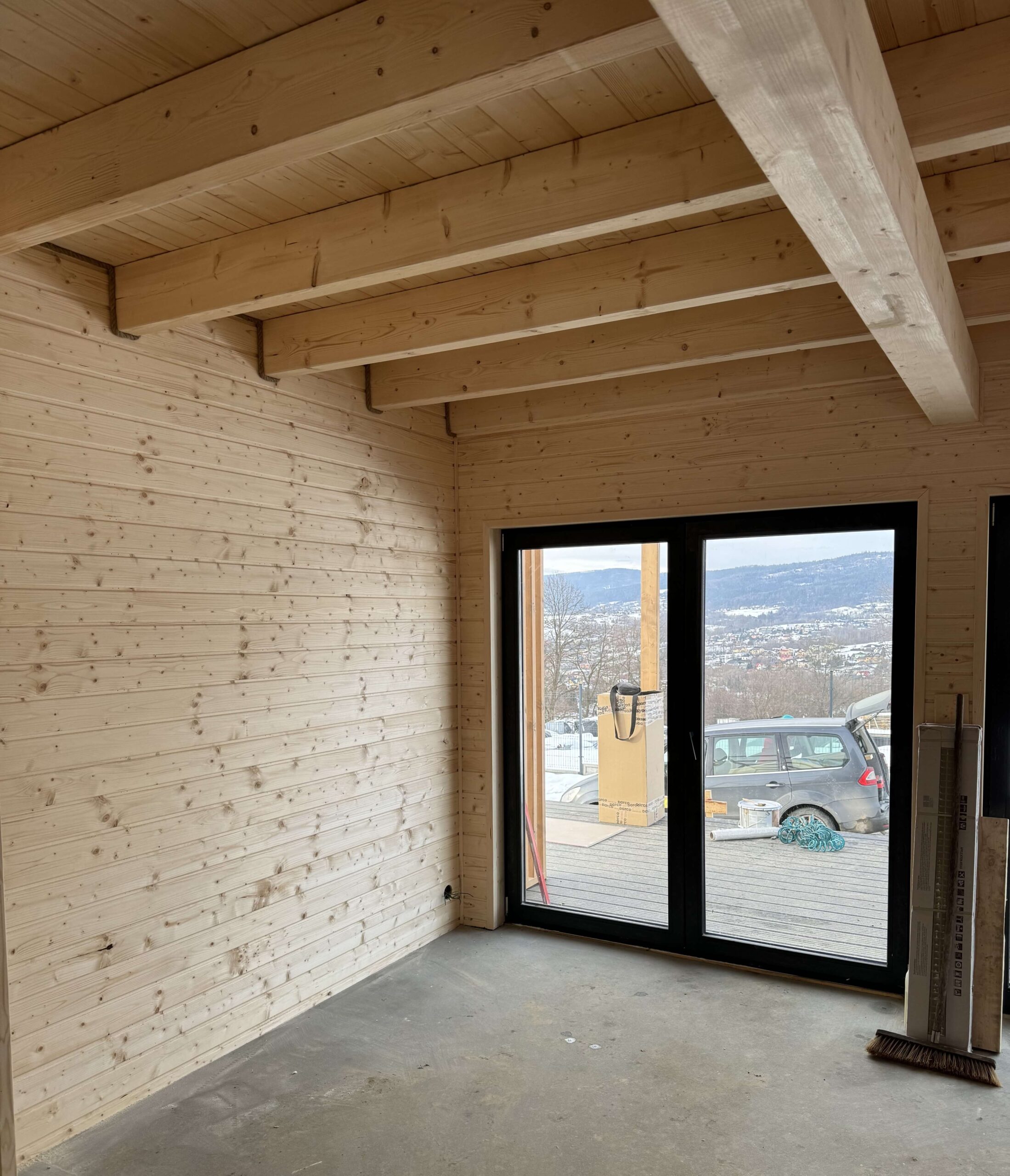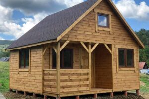 Konstrukcja domu wykonana z drewna świerkowego klasyfikowanego C24 o przekroju 45x145mm /dach 45x195mm