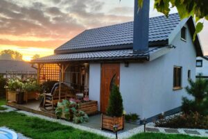 Urokliwy domek o powierzchni zabudowy 35 m2 położony w malowniczej lokalizacji na beskidzkim pogórzu. Duże przeszklenia zarówno na parterze, jak i poddaszu dają możliwość maksymalnego wykorzystania światła dziennego oraz zwiększają atrakcyjność wizualną zarówno na zewnątrz, jak i wewnątrz budynku. Całość dopełnia narożny taras, do którego dostęp zapewniają duże przeszklone drzwi. Więcej informacji już wkrótce. Zapraszamy do kontaktu!