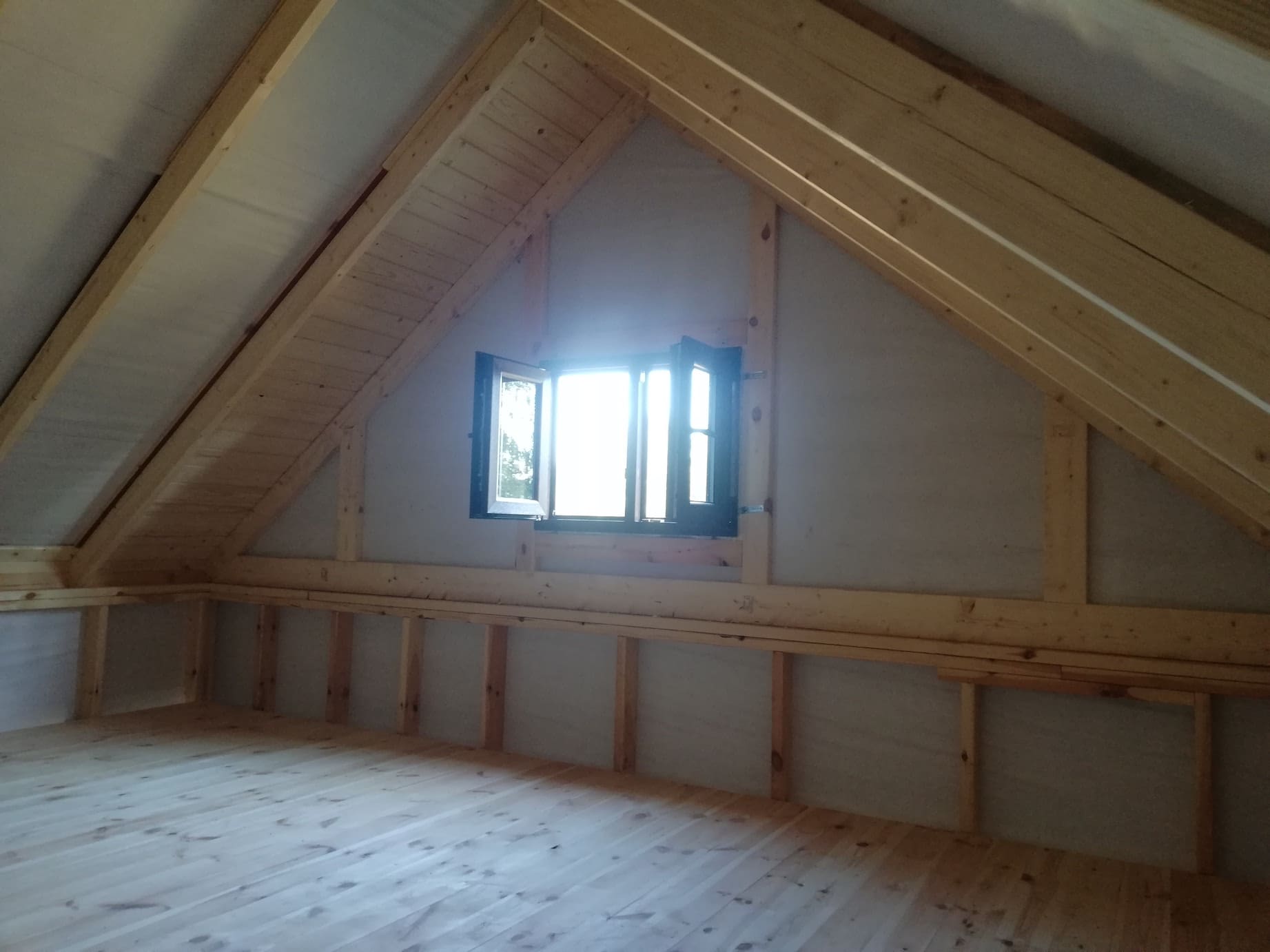 – Okna PCV: 3 szt. jednokwaterowe o wymiarach ok. 100x110cm , 1 szt. 50×50cm do WC i 2 szt. na poddaszu o wymiarach ok. 80×90cm