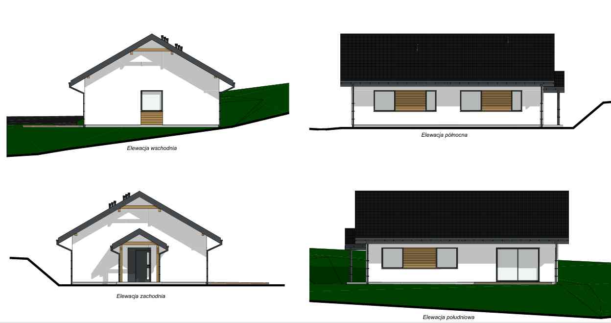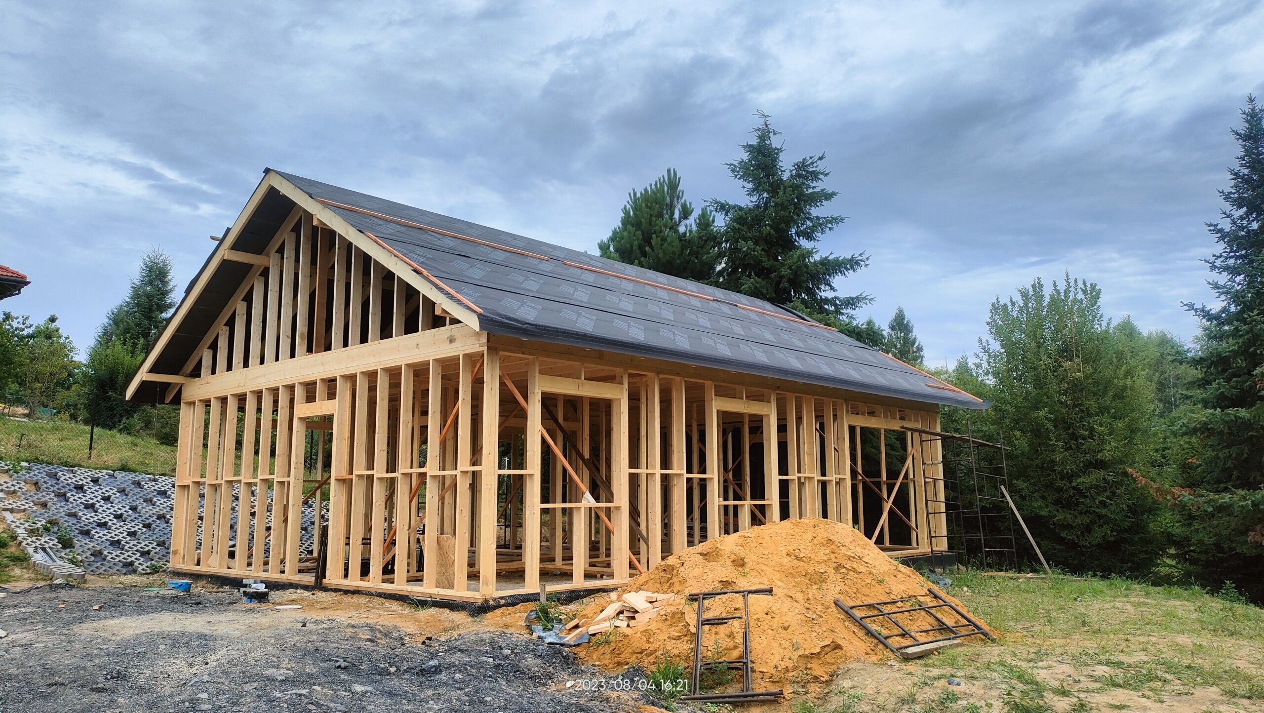 Konstrukcja domu wykonana z drewna świerkowego klasyfikowanego C24 o przekroju 45x145mm /dach 45x195mm