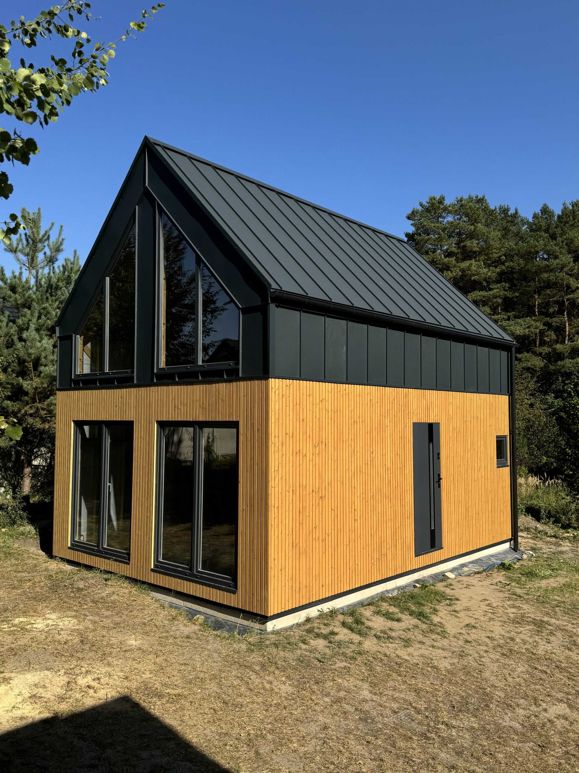 Konstrukcja domu wykonana z drewna świerkowego klasyfikowanego C24 o przekroju 45x145mm /dach 45x195mm